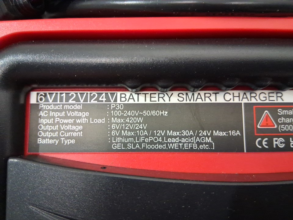 Max current: 6V/10A, 12V/30A, 24V/16A Battery types: Lithium, Lifepo4, Lead-Acid (PB/AGM/GEL/EFB, MF,FLOODED, VRLA, SLA, wet batteries) Tested for power