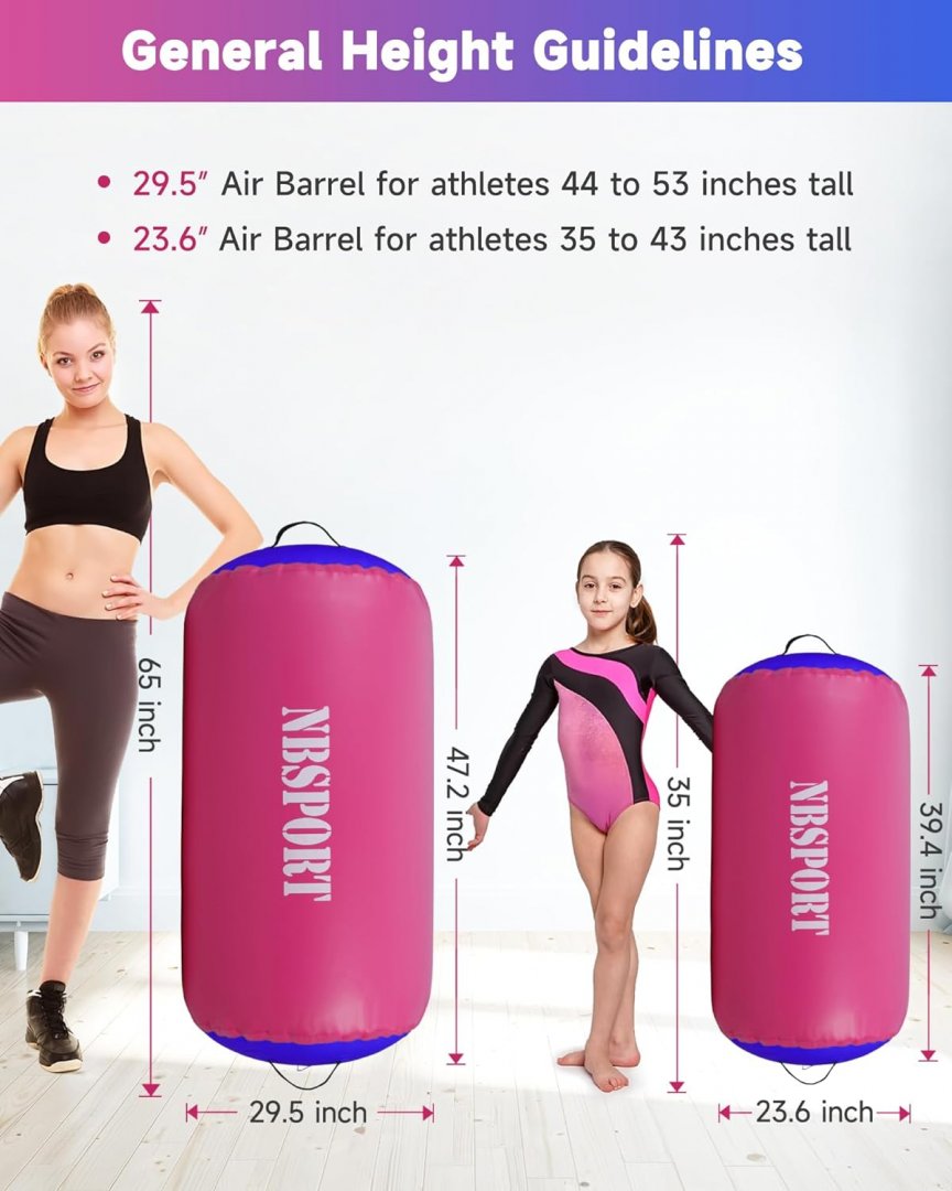 adults NBSPORT Gymnastic Inflatable Air Roller Barrel WITH PUMP - PINK