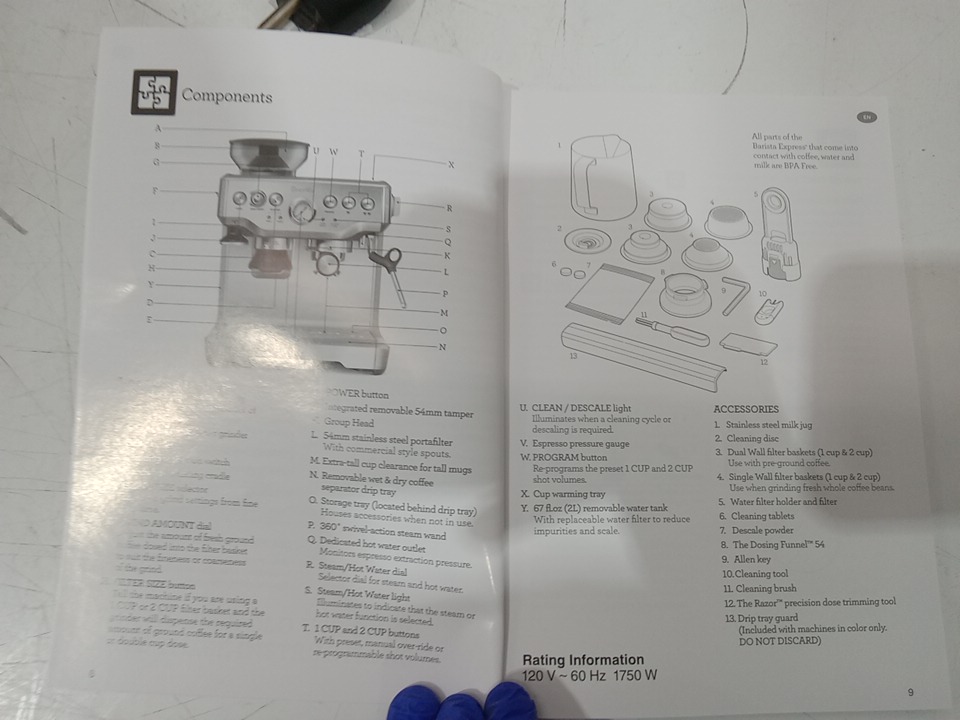 Please note that the stainless steel milk jug and descale powder are missing from the original packaging. There are coffee residue on the grinder and minor scratch marks on the sides. There are minor coffee stains/residue on the tray. The water tank has water stains. Tested for basic power only. (Please see photos) This item will not be eligible for our warranty unless the machine was descaled & cleaned using the manufacturer's instructions. If you require additional time for our warranty in order to clean these machines, please reach out to us before your specified warranty deadline. Due to the high sensitivity and frequent upkeep of operation on these units, additional cleaning may be required. If not descaled with model specific cleaning product, the units may become clogged and will cause potential operational issues. Please refer to the manufacturers operations manual for detailed cleaning instructions.