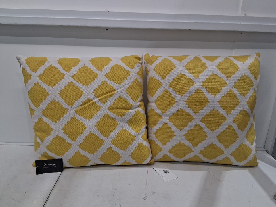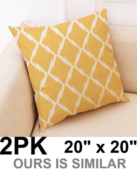 2pk Oranzze throw pillows for couch, bedroom 20" x 20" - yellow/white