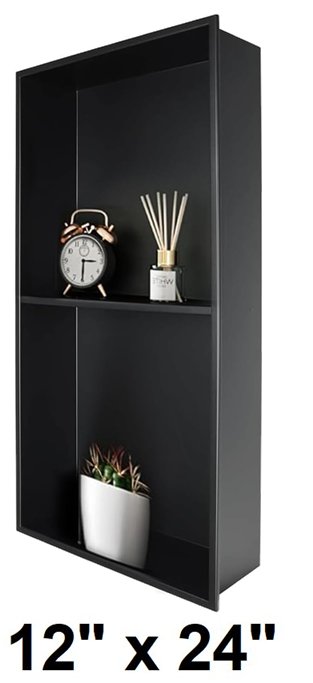 bwe bathroom wall niche with shelf - 12" x 24" - BLACK (model: 1112-B)