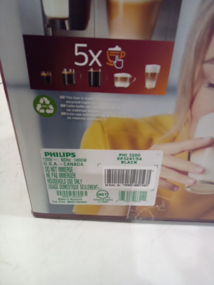 PHILIPS 3200 SERIES LATTEGO FULLY AUTOMATIC ESPRESSO MACHINE WITH BUILT-IN GRINDER & MILK FROTHER - BLACK (MODEL: EP3241/54)