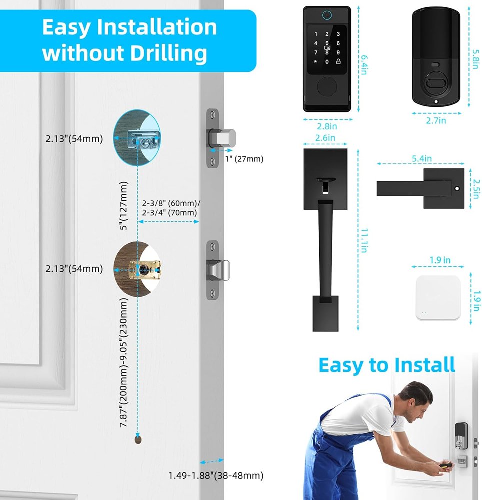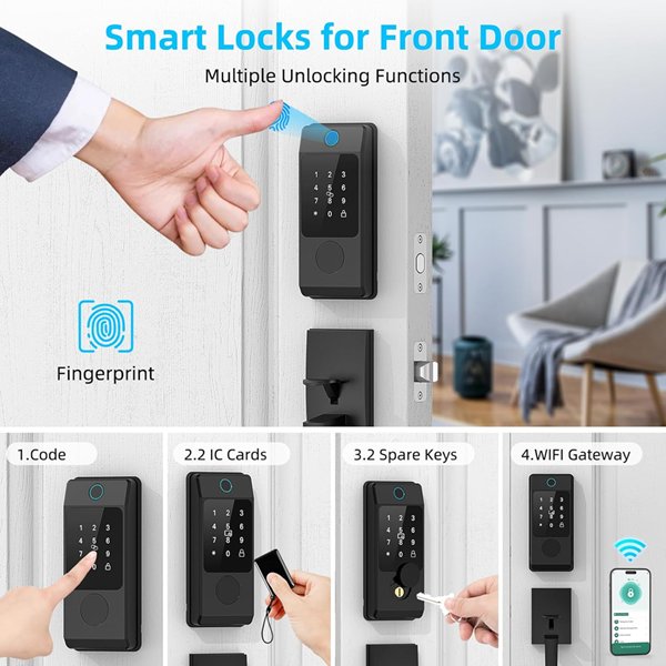 Miuedo WiFi Smart Deadbolt Door Lock With Electronic Keypad And Fingerprint Lock - Compatible with Alexa or Google Assistant - Black