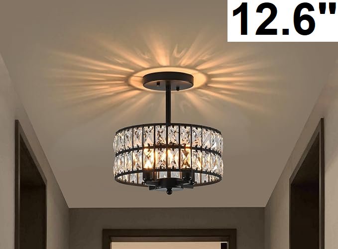 seeu modern flush mount crystal chandelier light fixture - 12.6" - black/clear (model: ‎CH020CBK)
