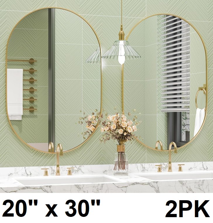 2pk CONGUILIAO Wall Mounted Mirrors oval shaped - 20" x 30" - gold/clear