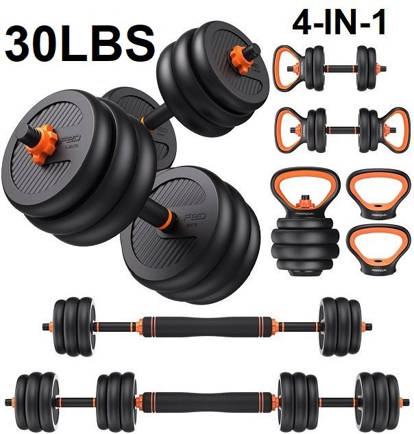 4-IN-1 Feierdun Adjustable Dumbbells Weight Set - 30LBS - Black/Orange
