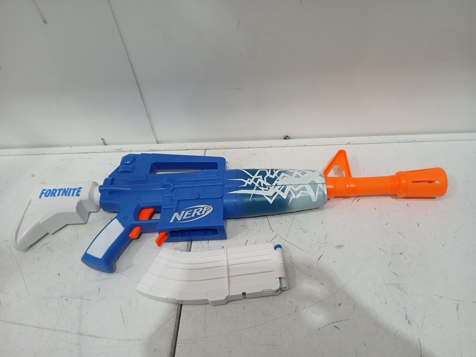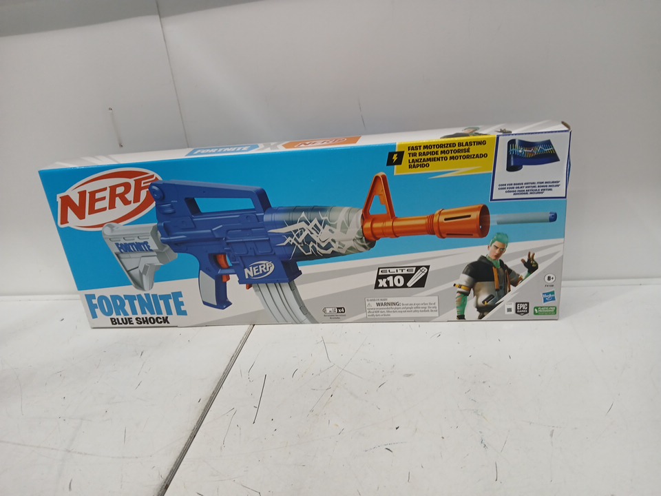 Nerf Fortnite Blue Shock Blaster - 10 dart clip - blue/white - (model: ‎F4108)