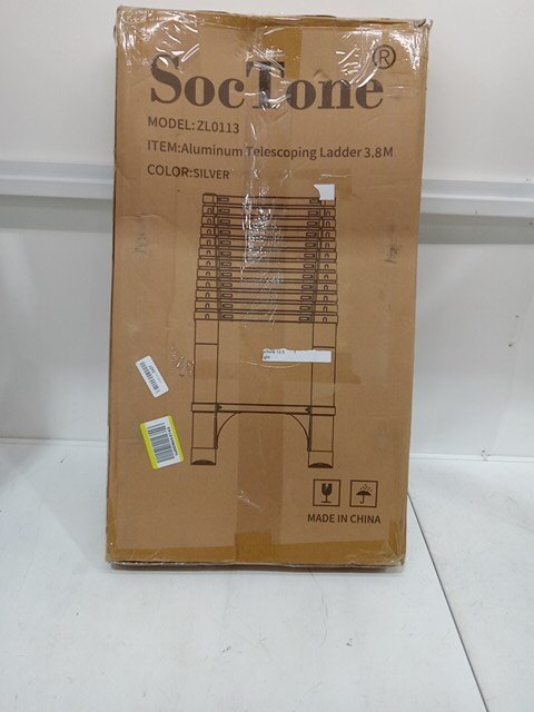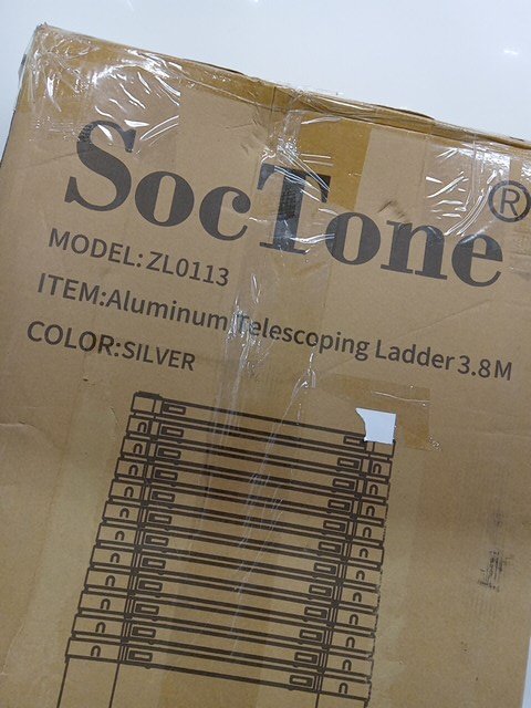 soctone telescoping aluminum lightweight extension ladder, 330lbs capacity - 12.5ft- silver (model: zl0113)