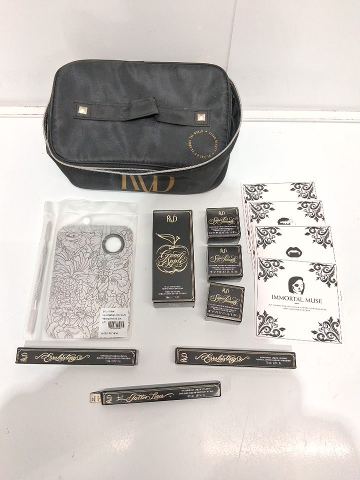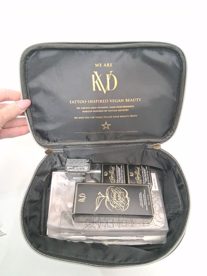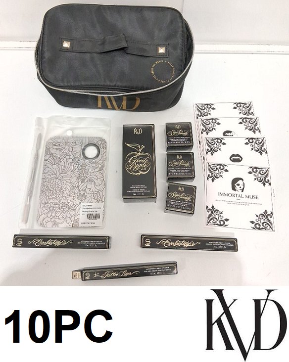 10PC KVD BEAUTY STARTER KIT WITH FOUNDATION, EYE SHADOWS, MIXING PALETTE, EYE LINER AND LIPSTICKS WITH TRAVEL POUCH