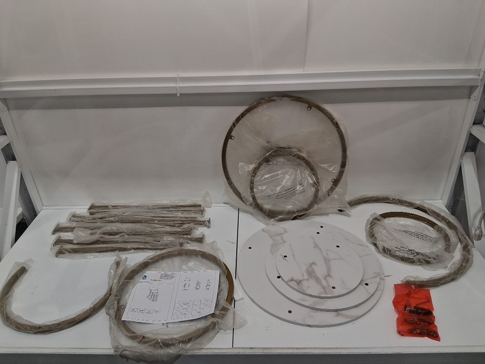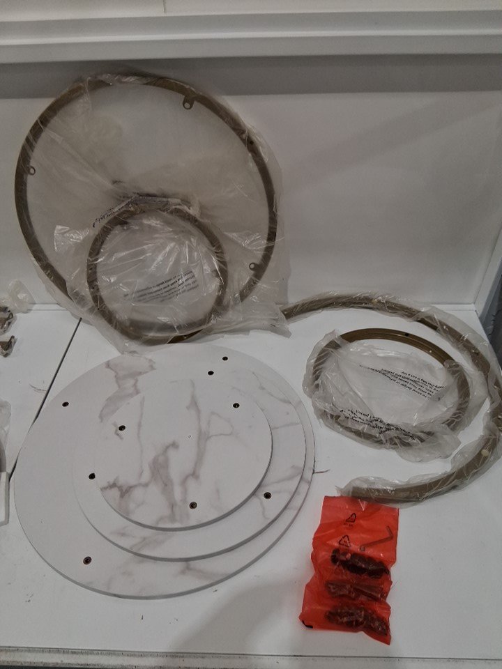 please note the the product was discovered to have some light scratches on the marble tops, please see photos for more details