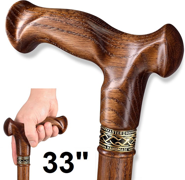 Asterom Handcrafted Ergonomic ambidextrous Wooden Walking Cane - 33" - caramel