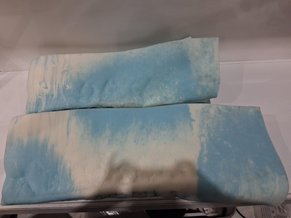 both toppers have areas where the egg carton design is compressed and may not re-fluff to previous height, please see photos