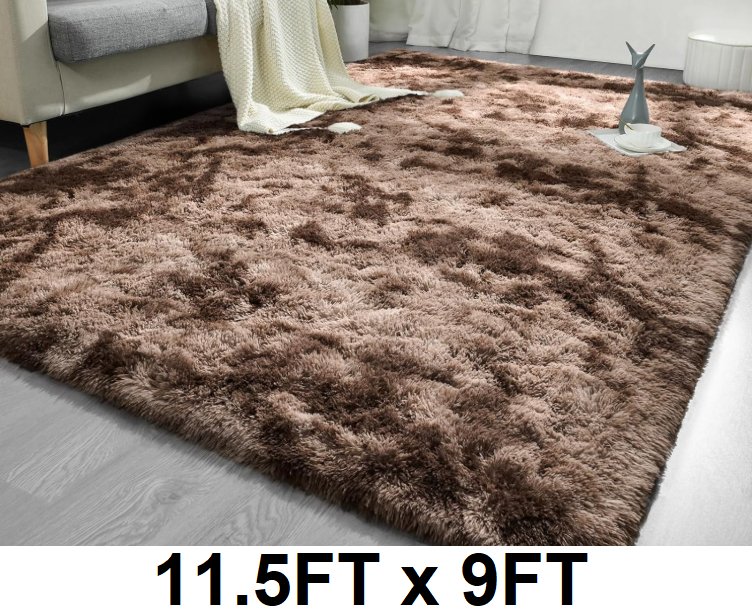FlyDOIT TIE DYED shaggy Large Area Rugs for Living Room - 11.5ft x 9ft - coffee (model:B0C22YVXGY)