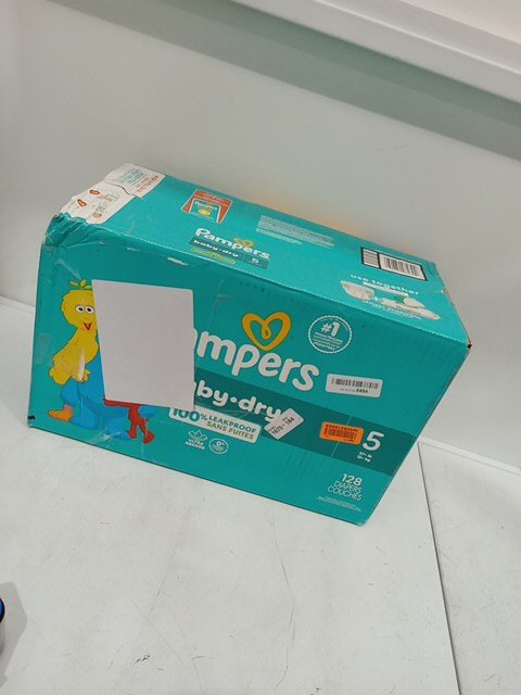 128PK PAMPERS BABY-DRY DISPOSABLE DIAPERS - SIZE 5 - 27+ LBS - SESAME STREET