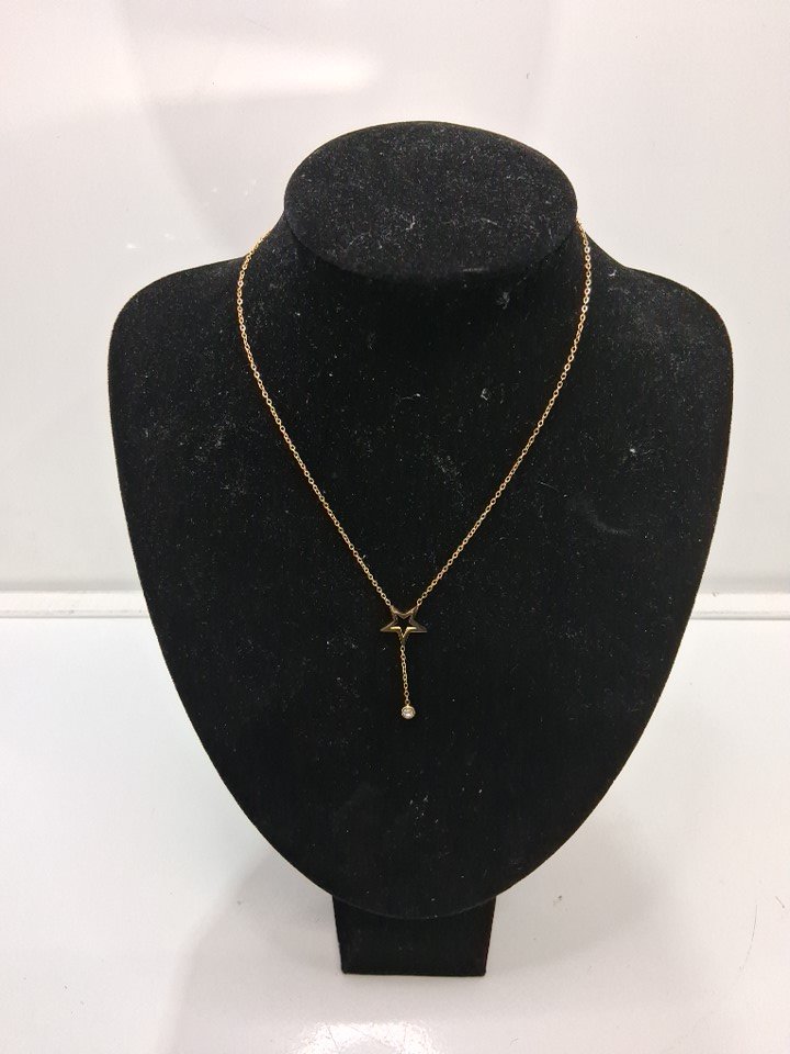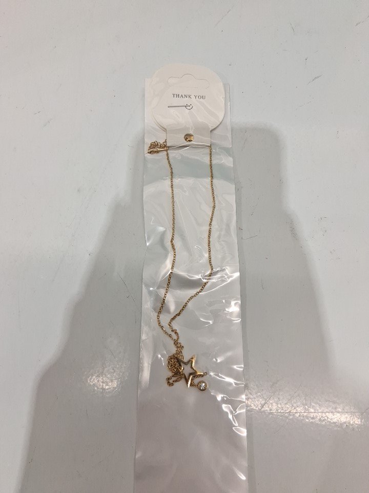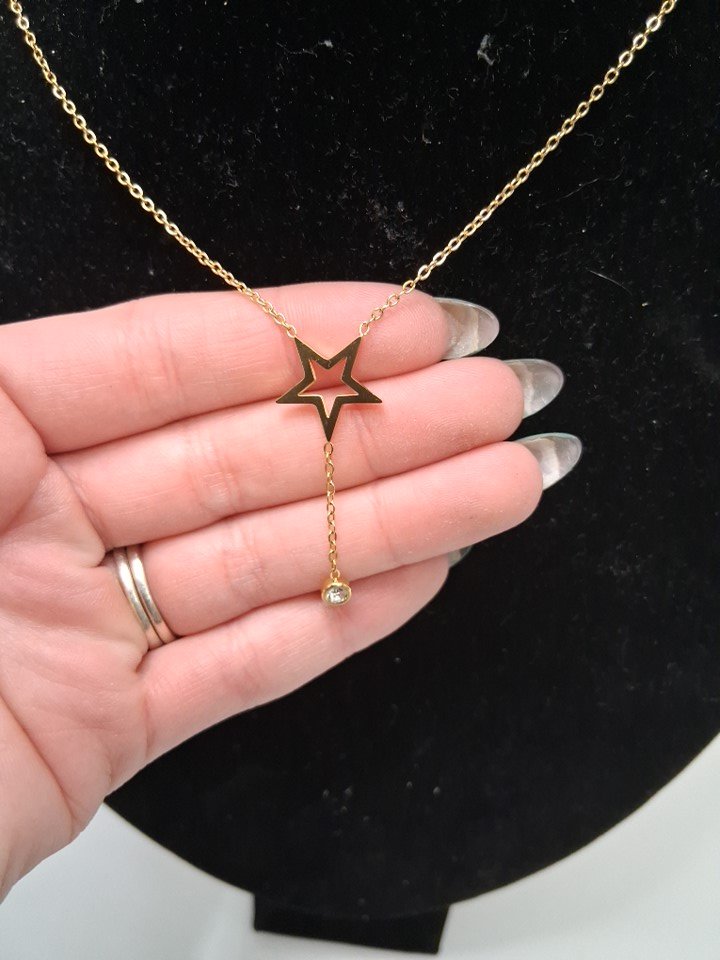 women's star with sparkling stone chain necklace - 16" - 18"/17mm pendant - stainless steel gold.