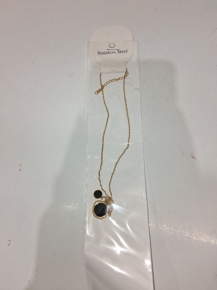 women's enamel disc drop chain necklace - 15.5" - 17.5" - 40mm drop - stainless steel gold/black.