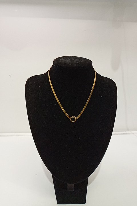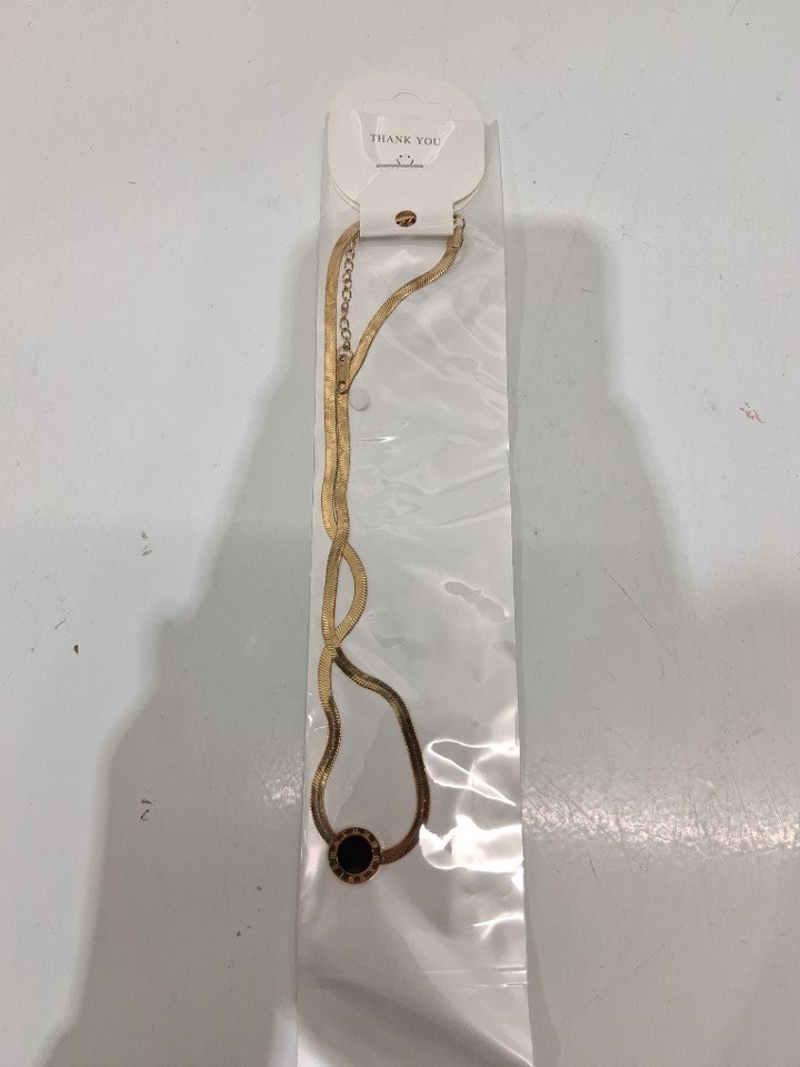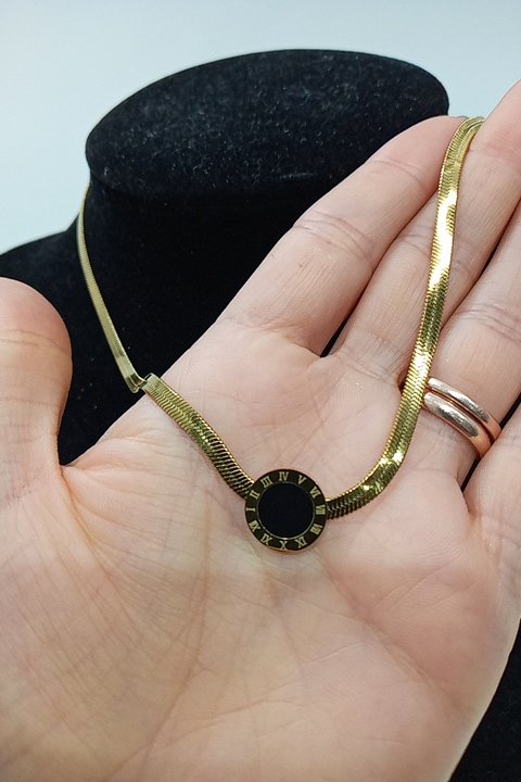 women's roman number enamel disc charm herringbone chain necklace - 15.5" - 17.5"/3mm width/~11mm charm - stainless steel gold/black.