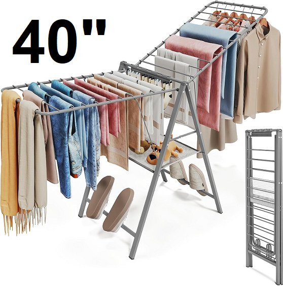 Foldable Clothes Drying Rack with Enhanced Capacity and Adjustable Wings - 40" - grey