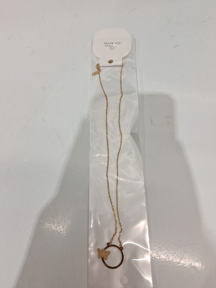 women's ring butterfly pendant chain necklace - 16" - 18"/17mm pendant - stainless steel gold.
