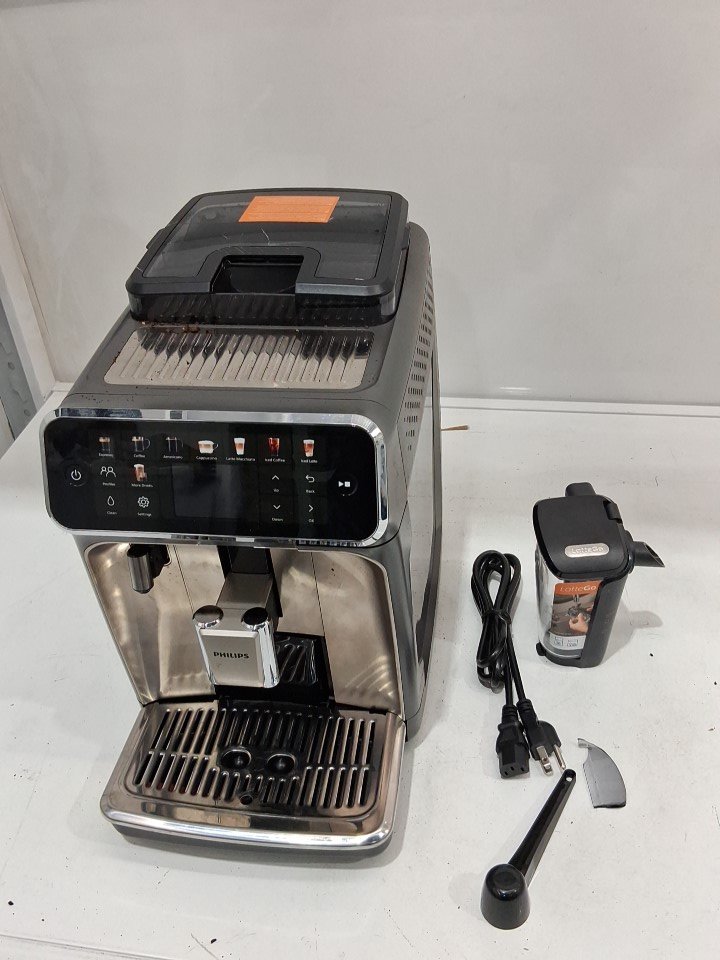 This item will not be eligible for our warranty unless the machine was descaled & cleaned using the manufacturer's instructions. If you require additional time for our warranty in order to clean these machines, please reach out to us before your specified warranty deadline. **Due to the high sensitivity and frequent upkeep of operation on these units, additional cleaning may be required. If not descaled with model specific cleaning product, the units may become clogged and will cause potential operational issues. Please refer to the manufacturer's operations manual for detailed cleaning instructions.** **Tested for power.** Item has coffee grounds debris in the hopper and throughout the machine, light scuffs/markings along the exterior from previous use, see photos. Item does not include a grease tube, aquaclean water filter, water hardness test strip, front panel of coffee grounds container, or a lid for the pre-ground coffee compartment; the pre-ground coffee compartment has a damaged/missing piece of plastic and the bean hopper lid has a crack through it, the adjustable coffee spout will only rest at the top or bottom its range, item's drip tray cover is warped and the drip tray full indicator is broken, see photos. Replacement parts are available for purchase online from the manufacturer (here: https://philips.encompass.com/model/SAEEP5544%7C94, https://philips.encompass.com/item/12631950/Saeco/421945012831/, https://philips.encompass.com/item/14910697/Saeco/421945047411/, https://philips.encompass.com/item/12503984/Saeco/421944088751/). *GENERIC CONDITION STATEMENT* This item has been handled/inspected, tested if needed by our listing staff to the best of their ability/knowledge and for an unknown reason arrived to our facility with an issue. This issue can either be a very minor/major cosmetic issue which most likely occurred during shipping such as a dent, indent, scuff, stain, scratch or nick. If not a cosmetic issue, it can be a function issue with the item itself or there could be certain parts missing to make the item complete from how it is sold originally. (See lister notes and photos attached of the issue stated as well as packaging condition).