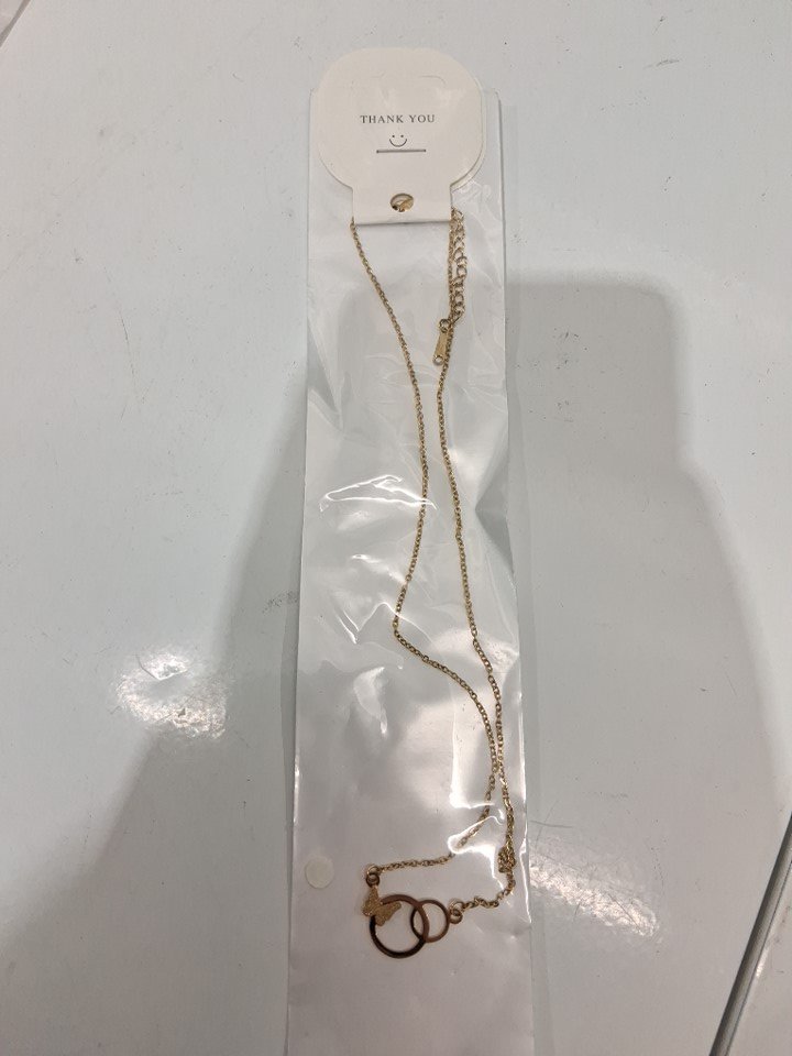 women's double ring butterfly pendant chain necklace - 16" - 18"/20mm pendant - stainless steel gold.