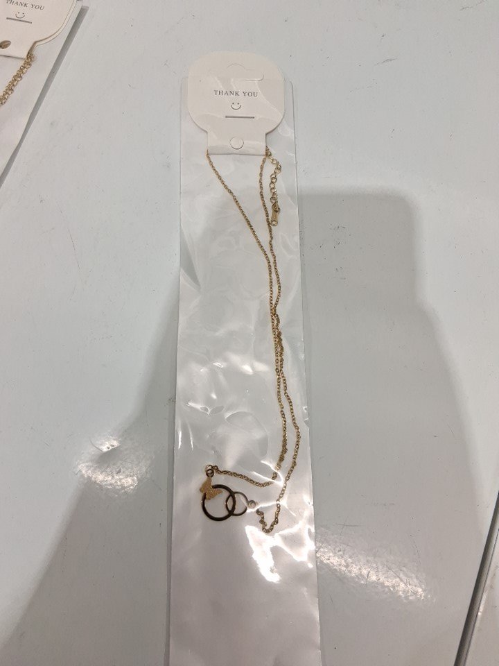 women's double ring butterfly pendant chain necklace - 16" - 18"/20mm pendant - stainless steel gold.