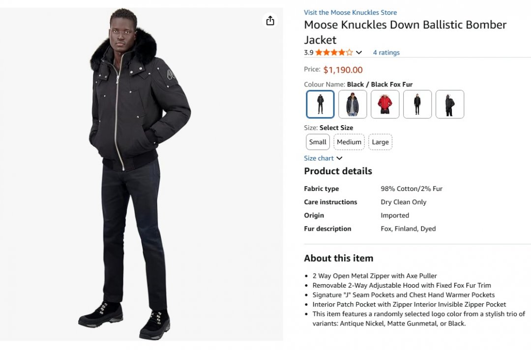 Men's Moose knuckle down ballistic bomber jacket with removable fur hood detail - black - Small