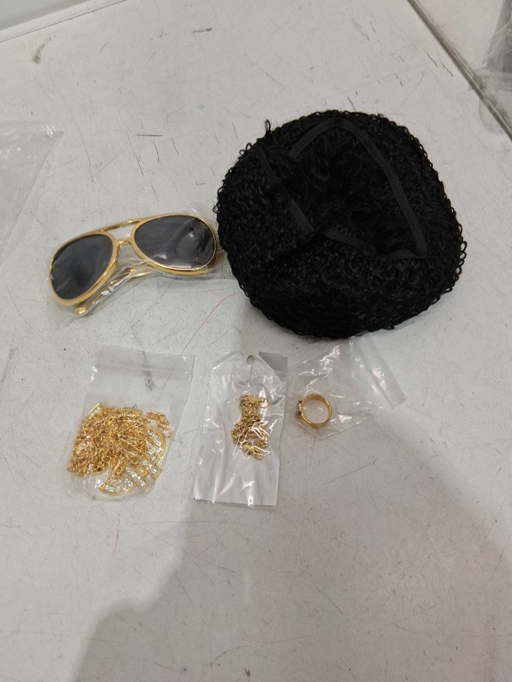 5PC Hippie Costume Set Funky Afro Wig Sunglasses - OSFM - GOLD /BLACK