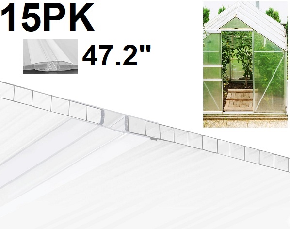 15pk teabelle h-shape polycarbonate greenhouse panel connectors - 47.2" - 4mm thickness - clear
