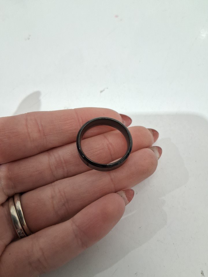 unisex steel plain wedding band ring - size 9/6mm - black.