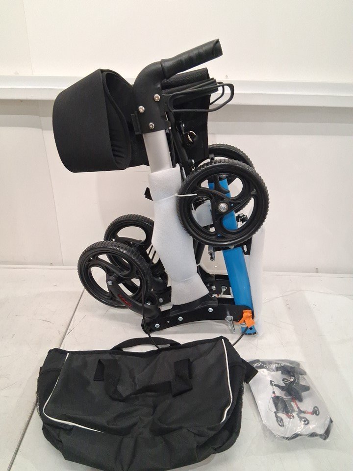 ELELIFE 2-in-1 Folding Aluminum Rollator Mobility Walking Aid with Seat and Adjustable Handles - 300lb max- blue