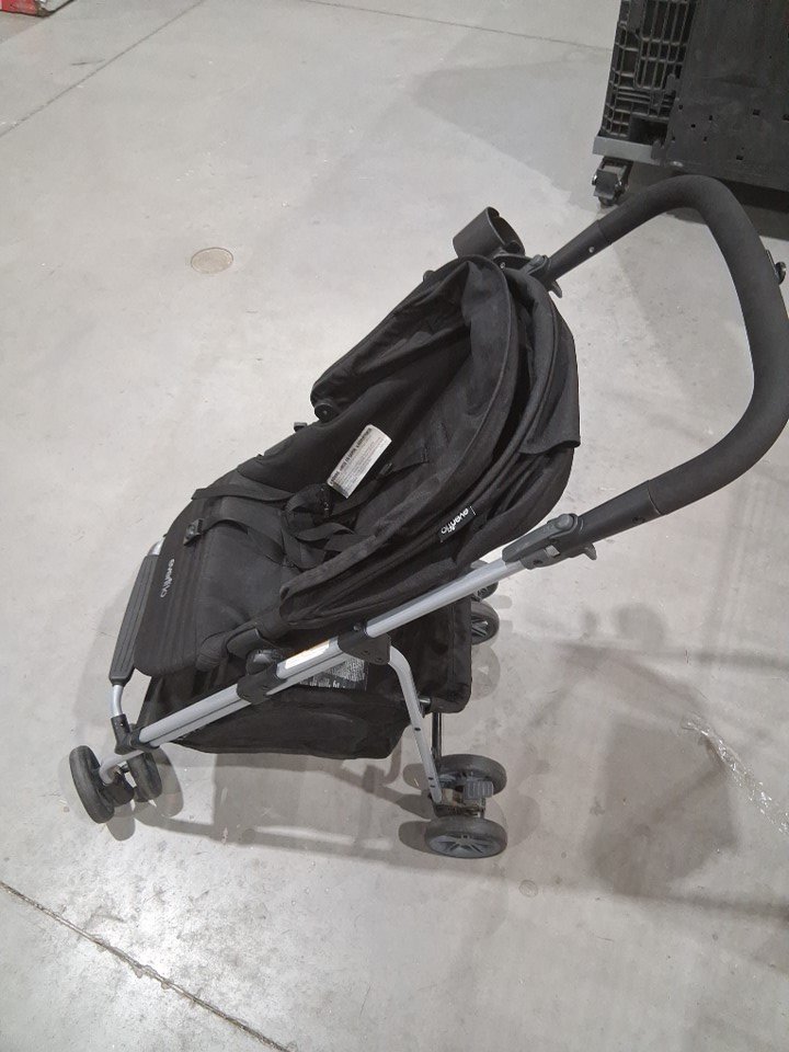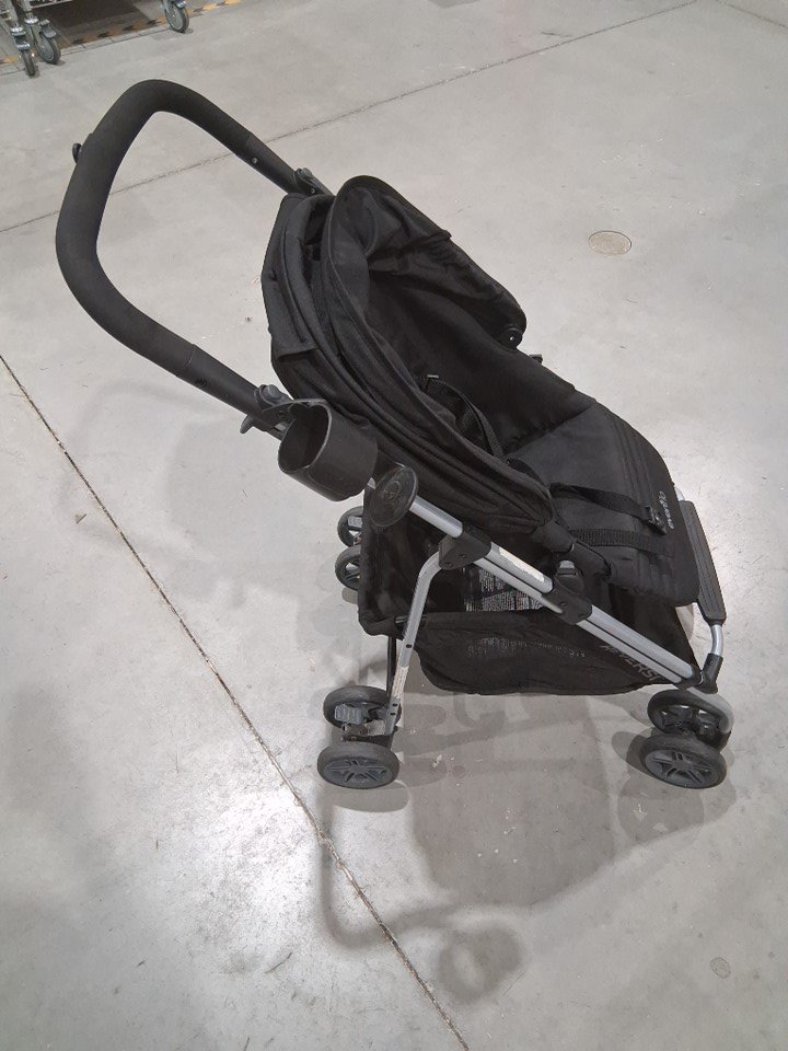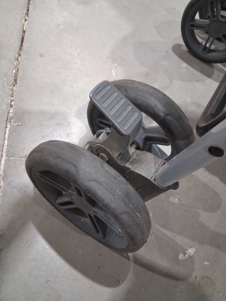The item has wear and debris on the tires indicates previous use.