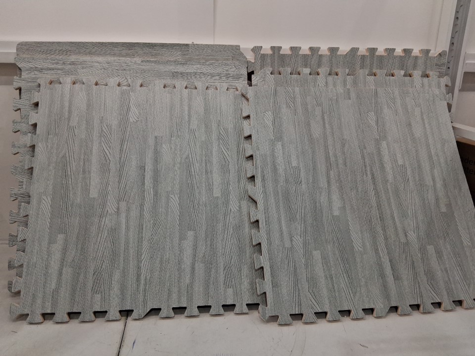 6PK welebar DURABLE seamless interlocking flooring mats FOR GYM EQUIPMENT/EXERCISING - 24" x 24" X 1/2" - grey wood grain (model: ‎WL-Grey-6Mats)