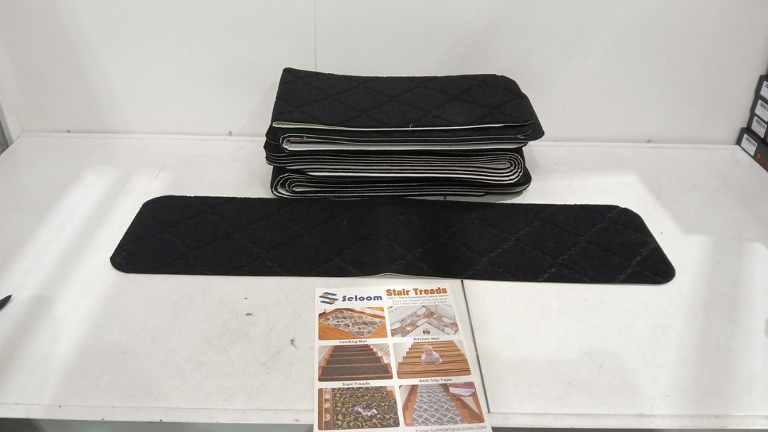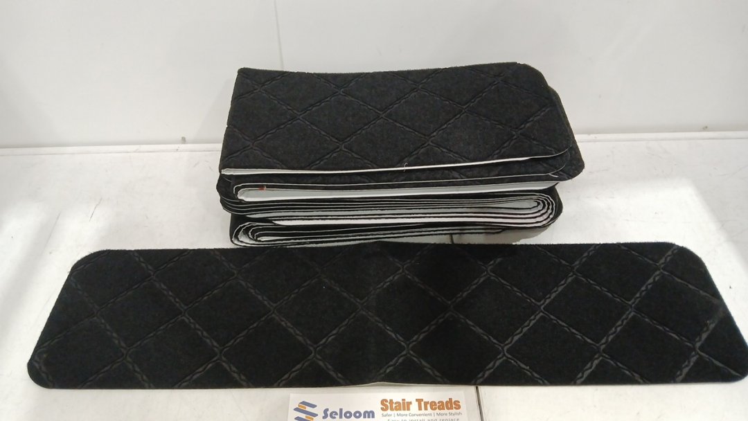 15PK SELOOM UPGRADED DECORATIVE SELF ADHESIVE NON-SLIP STAIR TREAD CARPETS - 9" X 36" - BLACK