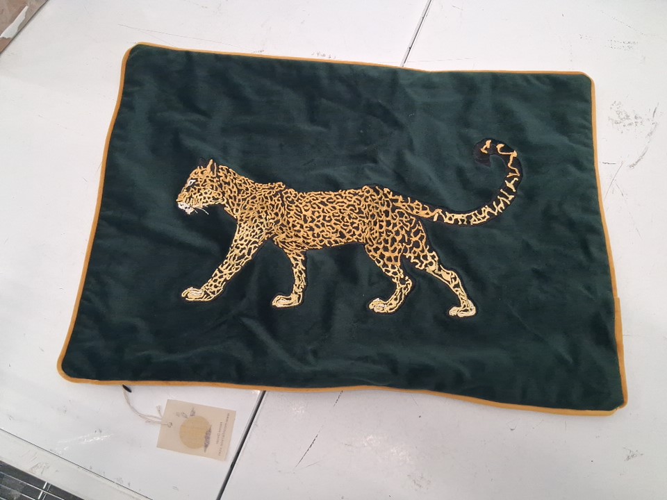 wayfair moonfairyco embroidered cheetah throw pillow cover - 14" x 20" - green/gold (model:MOFC1324)