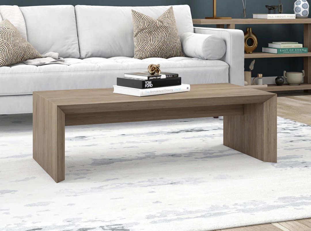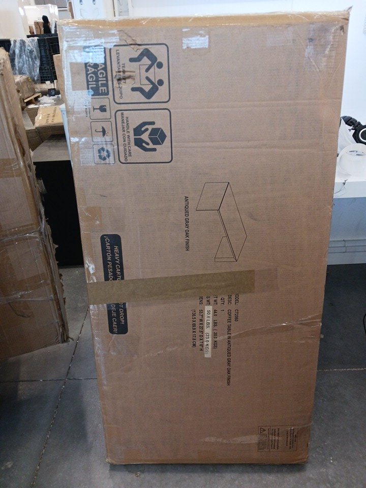 Ebern Designs Oswin Rectangular Coffee Table with Textured Wood-Grain Finish, Sturdy Sled-Style Metal Base and Included Hardware - Antiqued Grey Oak (Model: CT2060)