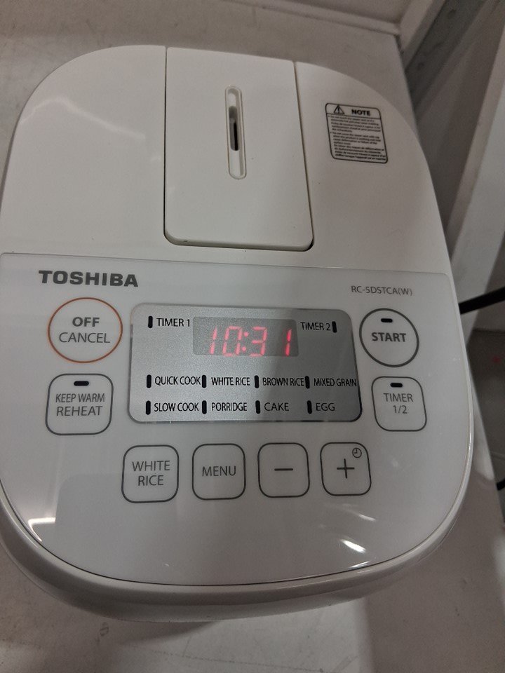 toshiba 8-function non-stick rice cooker - 3 cup uncooked - white (model: rc-5dstca)