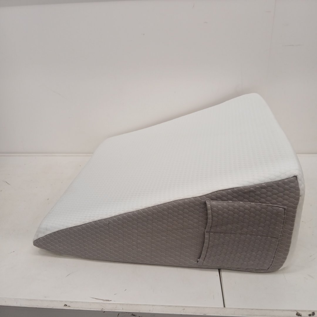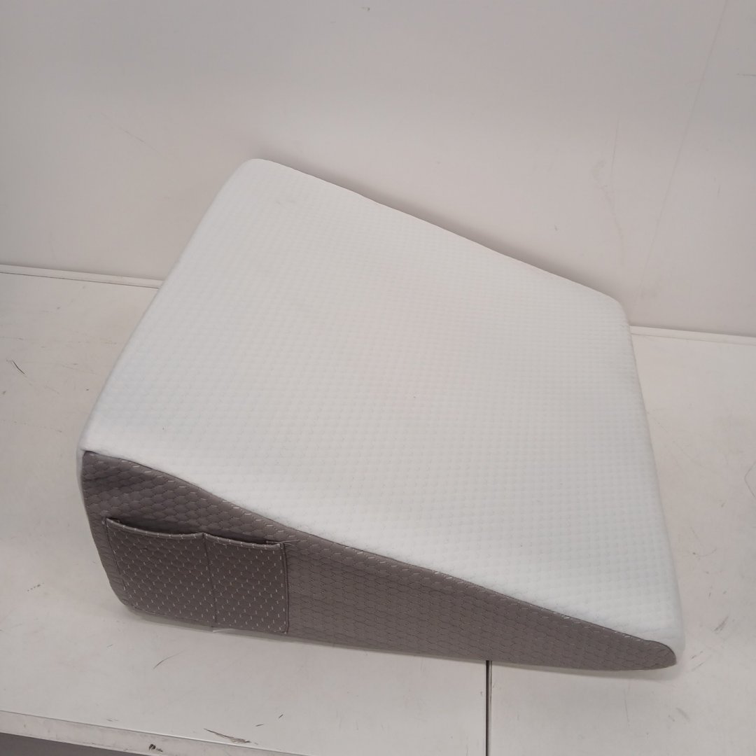 bedluxe Bed Wedge Pillow for Sleeping with side pockets - 24" x 14" x 10" - white/grey