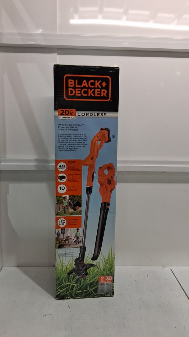 2PC BLACK+DECKER Cordless 10" String Trimmer/Edger and Sweeper Kit with 1.5Ah Battery and Charger - 20V Max - Black/Orange (Model: LCC222-CA/LSW221/LST201)
