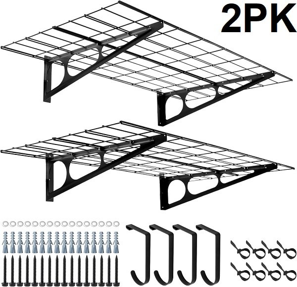 2pk sinoer garage shelf with hooks - 2ft x 4ft - black