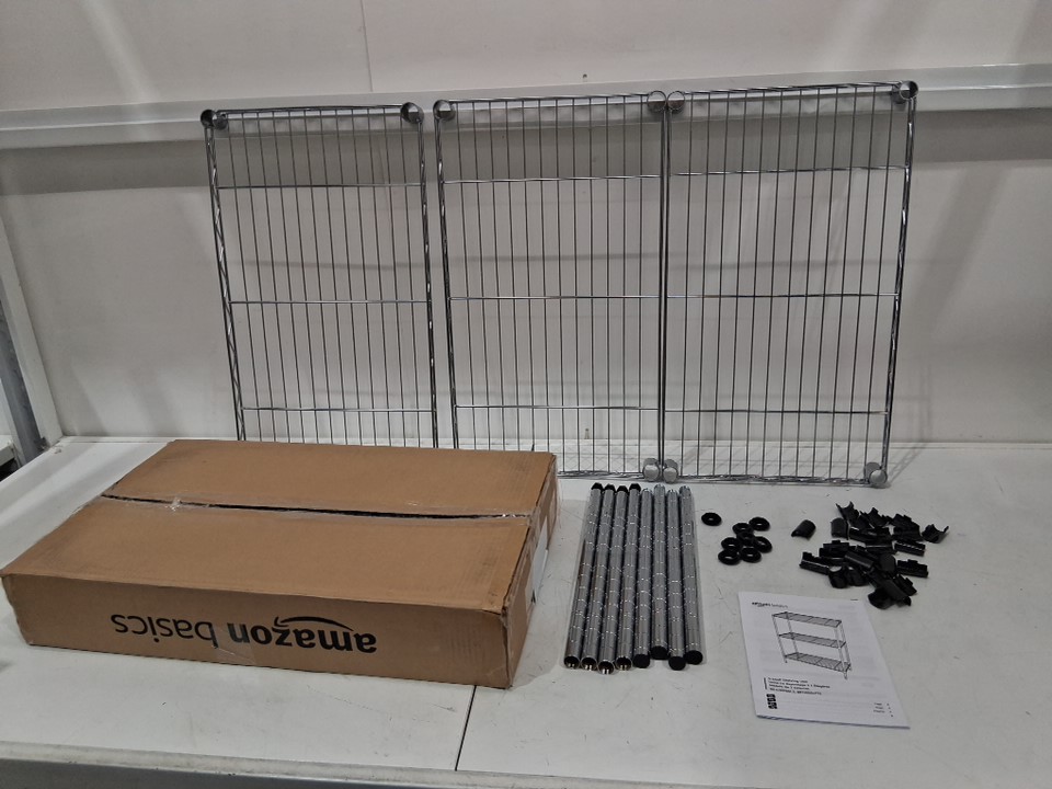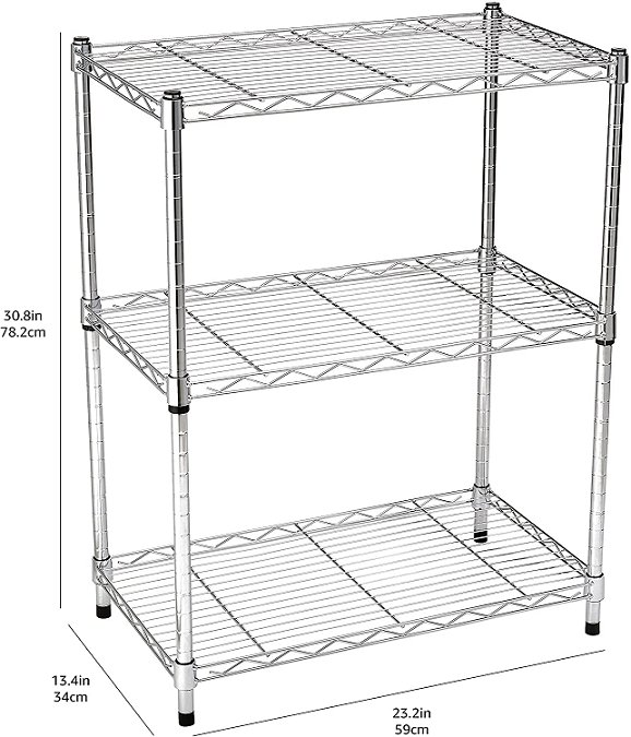 AMAZONBASICS 3-SHELF SHELVING STORAGE UNIT - 13" x 30" x 23" - CHROME