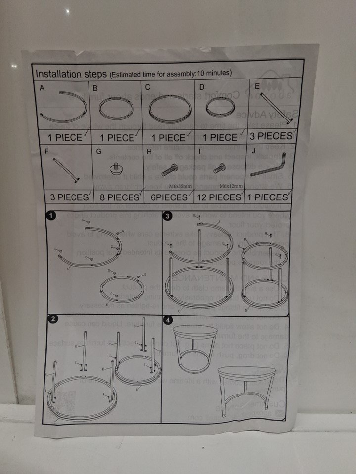 aboxoo Nesting Coffee Table Set - 24" x 18" - black/GOLD (model: zy2276)
