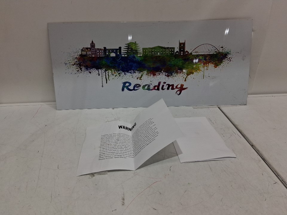Designart Reading Skyline-Cityscape Metal Wall Art - 27" x 12" - multicolored