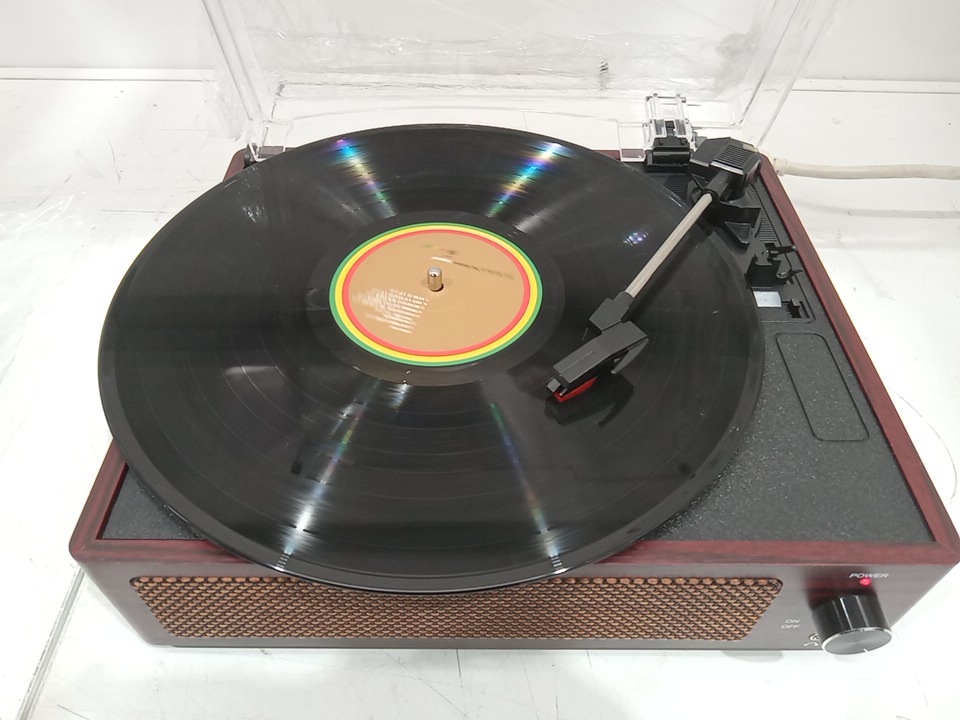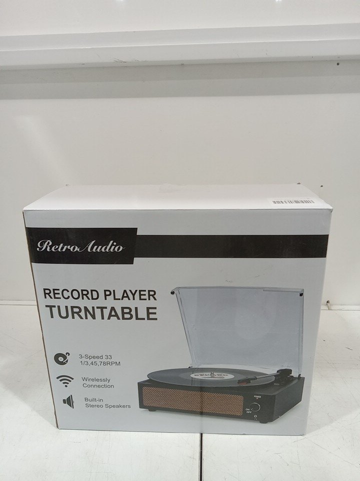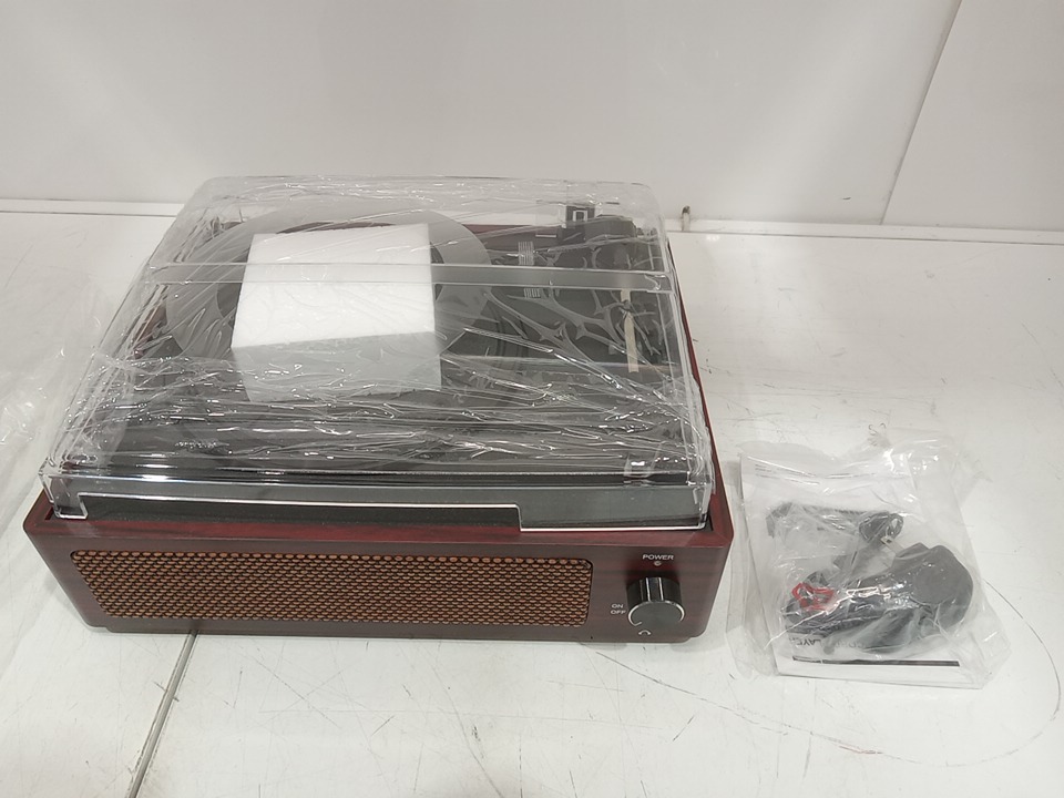 RETROLIFE RECORD PLAYER TURNTABLE WITH BUILT IN STEREO SPEAKERS, 3 SPEED MODES, WIRELESS BLUETOOTH CONECTION, AND USB PORT FOR MUSIC, AUX IN RCA OUT, 12.8" X 10.8" X 11.8" - BROWN/BLACK (MODEL: R608)