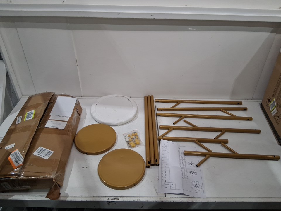 please note there are some scratches on the shelves and the base from improper protection packaging. Also, we are unsure of the details