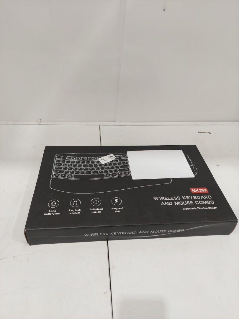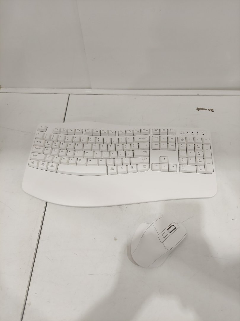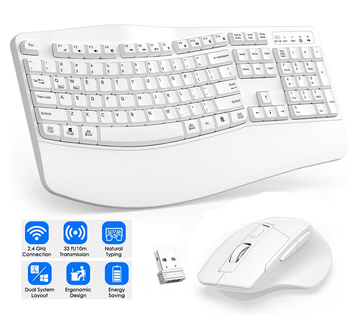 wireless 2.4g full size wave keys ergonomic keyboard with wrist rest & wireless ergonomic mouse combo pack - white (model: mk399)