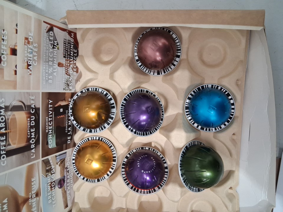 please note there are some water marks and signs of use on the item. tested for power only. please note 2 of the trial pods are gone. see photos.