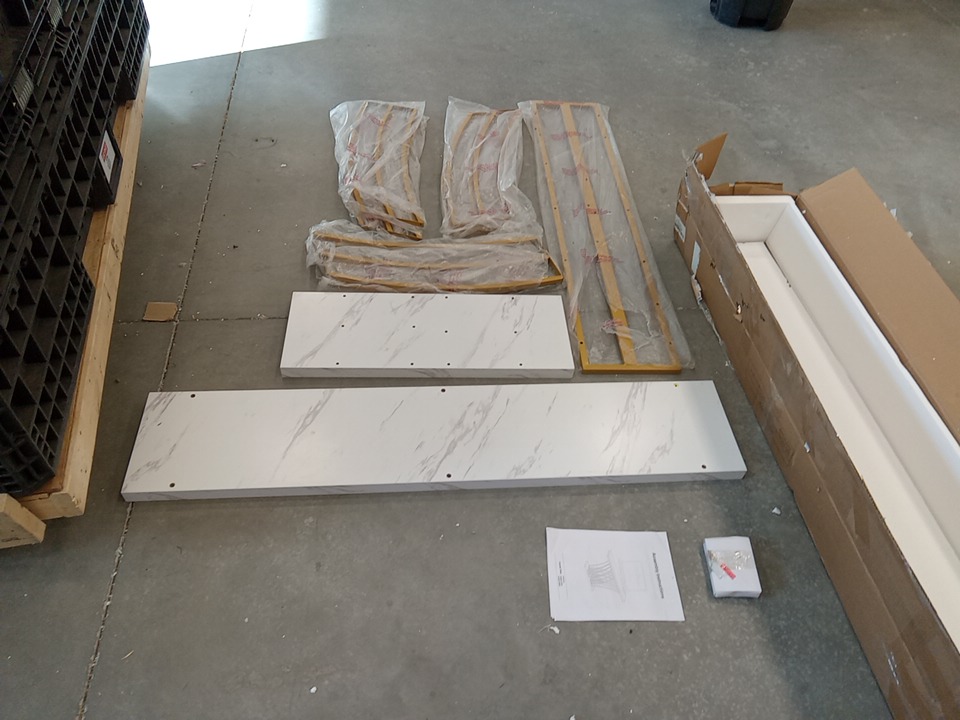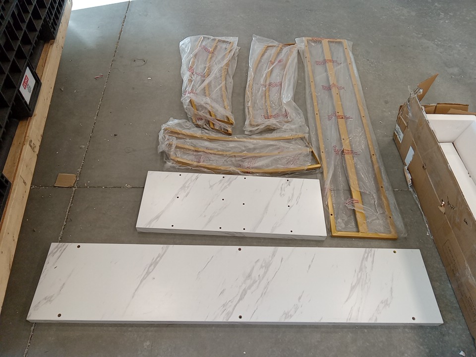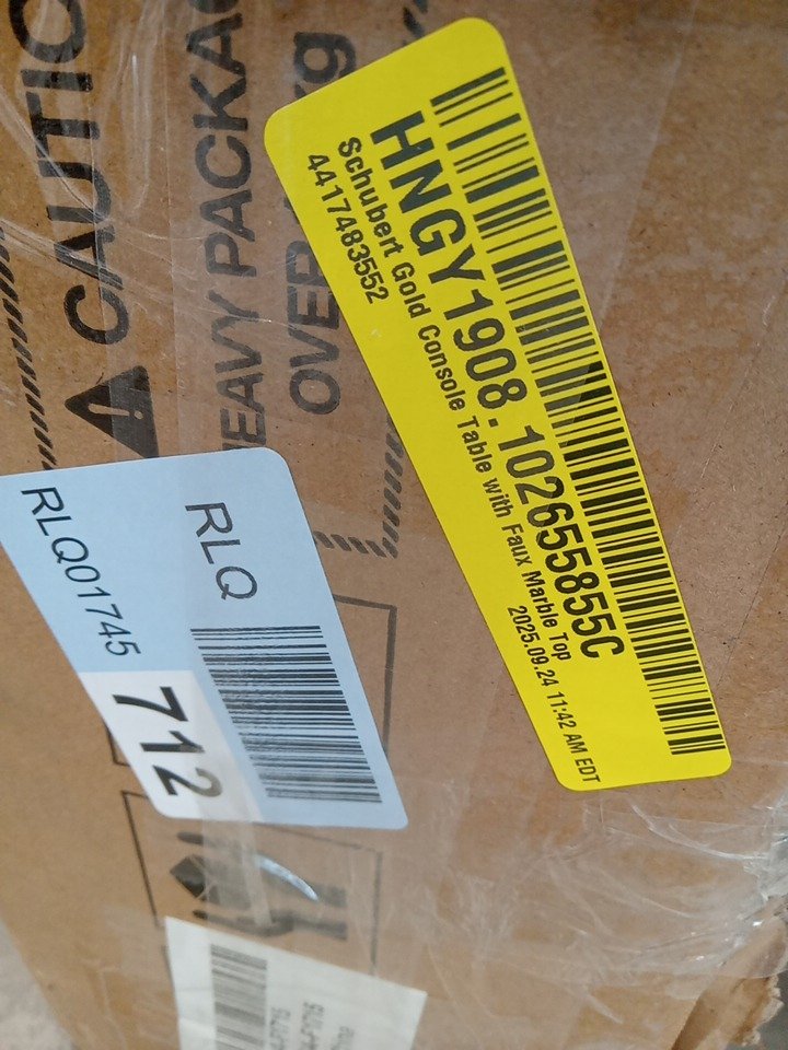TRIBESIGNS Faux Marble Console Table with Geometric Metal Base - 59" - white / gold (mHOGA-F1715)odel: