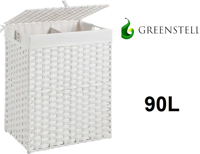 GREENSTELL RATTAN LAUNDRY HAMPER WITH 2 REMOVABLE LINERS - 90L - WHITE (MODEL: LH012-V2-WE-XL-GL)