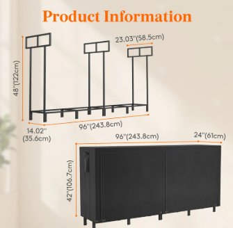 Lifewit Firewood Rack with Waterproof Cover - 8FT - 96"X 24"X 42" - BLACK (MODEL: 24224.01BL.V1)